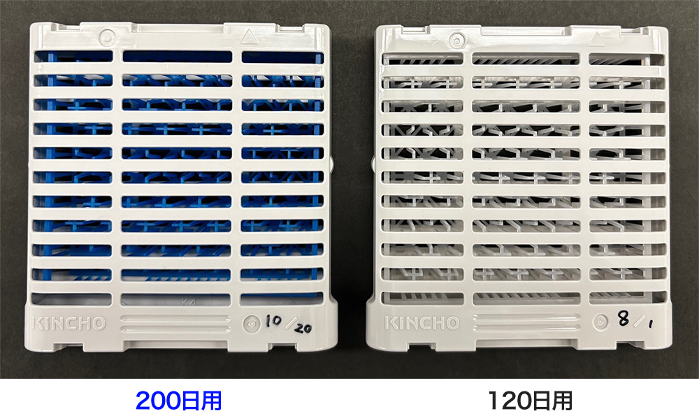 カートリッジの中にある立体構造メッシュが「青」なら200日用、「白(透明)」なら120日用です。